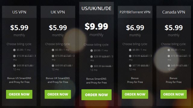 支持 Open加速器、PPTP、L2TP。他们宣传 24 小时免费试用以测试该服务。